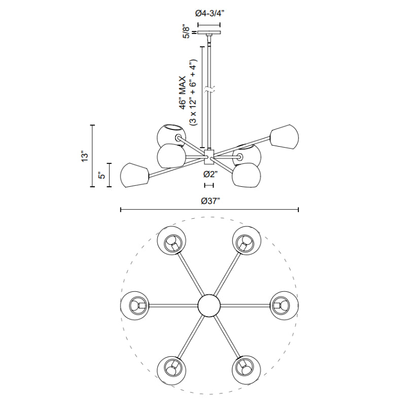 - 6 x 60WΒ E12 Candelabra Base Incandescent (Not Included)