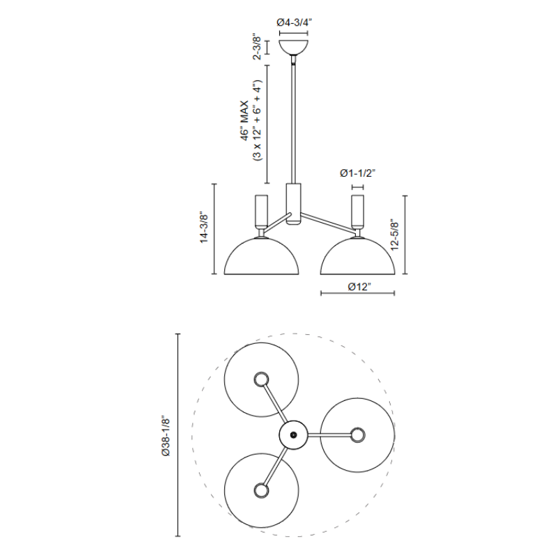 - 3 x 60W E26 Medium Base Incandescent (Not Included)