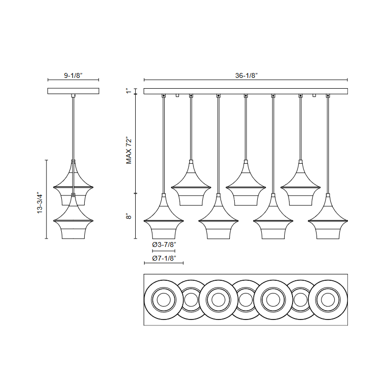- 7 x 60W E26 Medium Base Incandescent (Not Included)