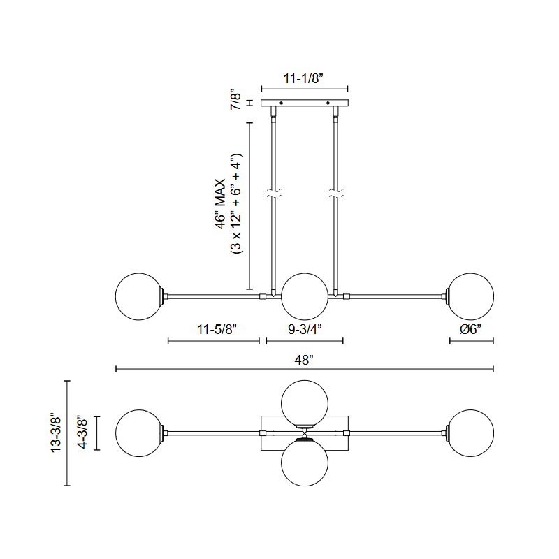 - Canopy: 11.13" L x 4.38" W x 0.88" H