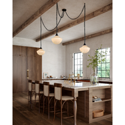 Introducing the Farrah collection, inspired by Moroccan style swag chandeliers. This adaptable design features three stunning pendants, effortlessly swaged to suit your space. With unique opal ribbed glass, each piece adds captivating texture and a bold charm that transforms any room into a statement of style.