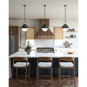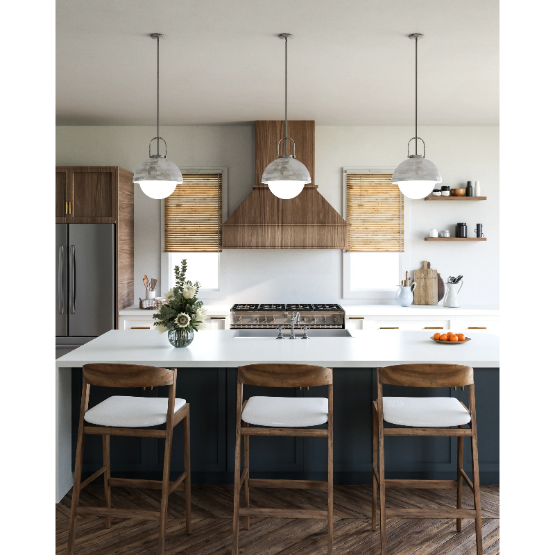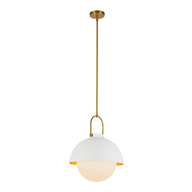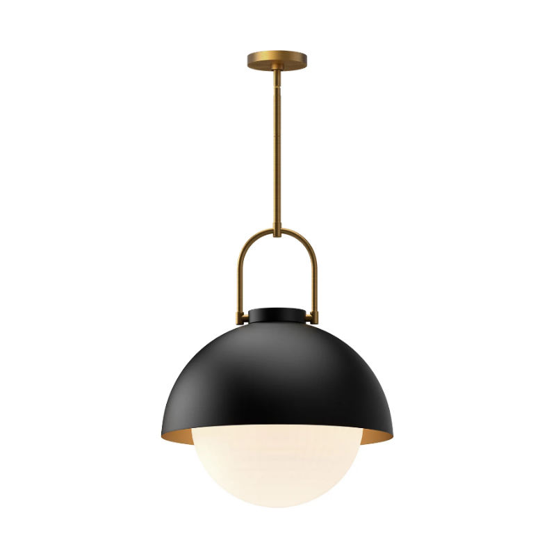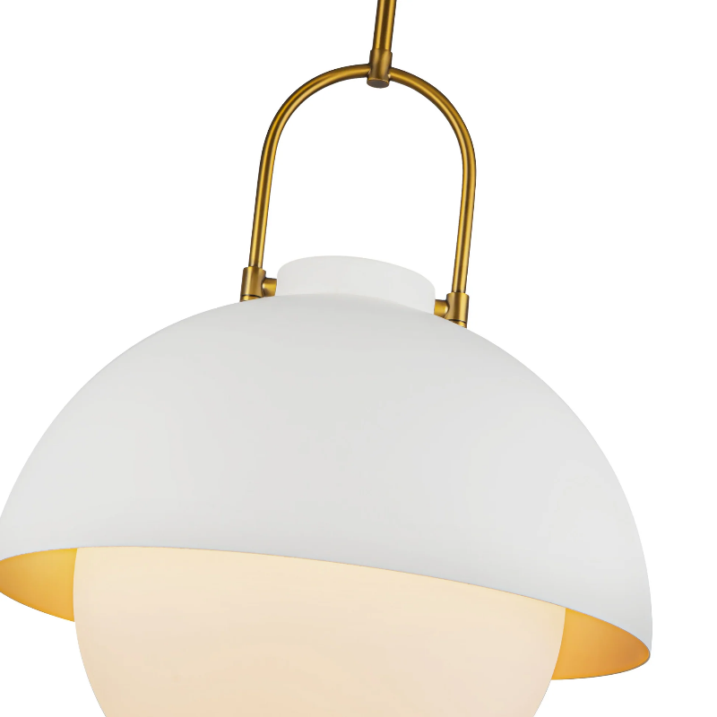 Classic metal shades and unexpected opal glass elements make up the Harper collection. The organically curved "handle" and shade of this collection is a modern take on classic pendants of the mid-century era. Change the mood of these pendants entirely with the finishes available in this collection.