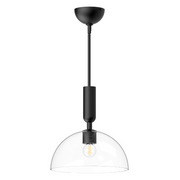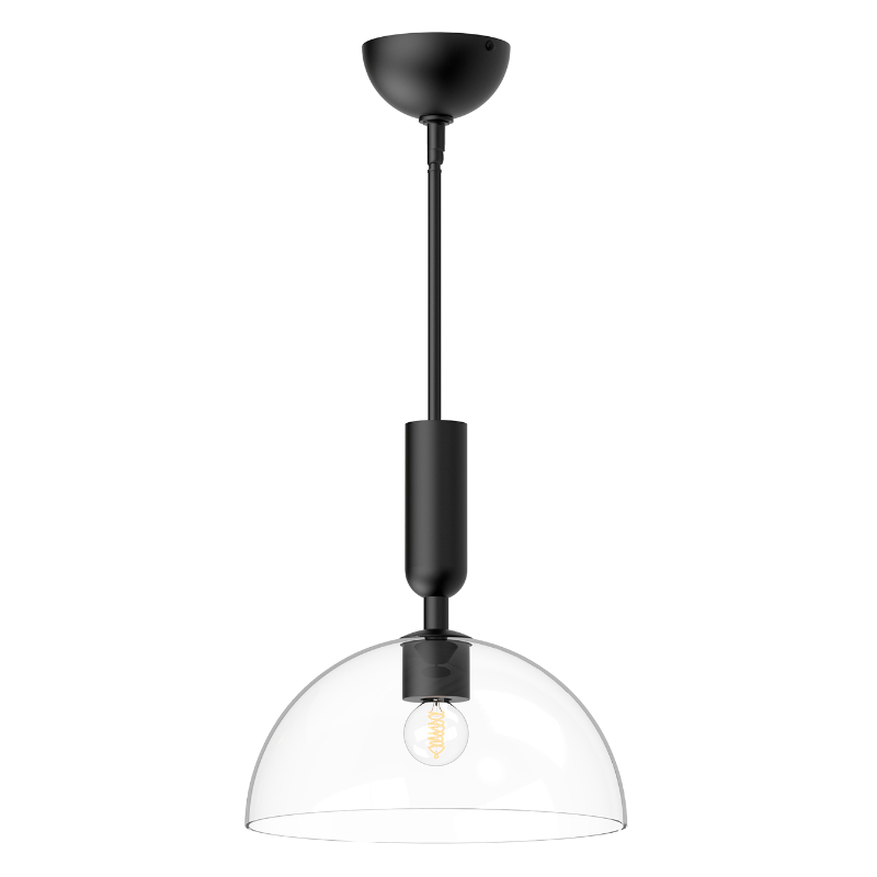 The culmination of simple shapes and unexpected details make the Jude collection unique. With geometric stems and organically curved details, the Jude adds artistic flair to any space. This collection of delicately forged metal is topped with a classic half-dome glass shade, giving it an hourglass-like silhouette fit for the runway.