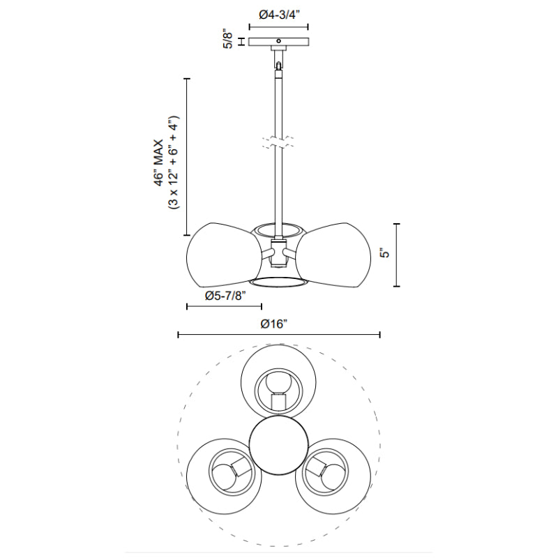 - 3 x 60W E12 Candelabra Base Incandescent (Not Included)