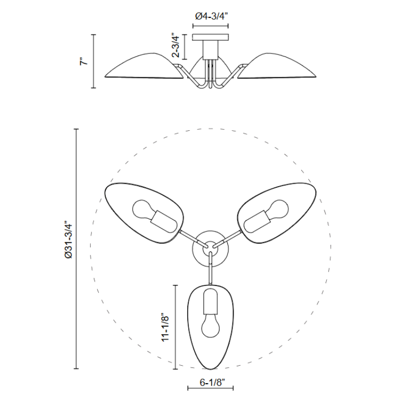 - Shade: 11.13" L x 6.13" W x 3.25" H