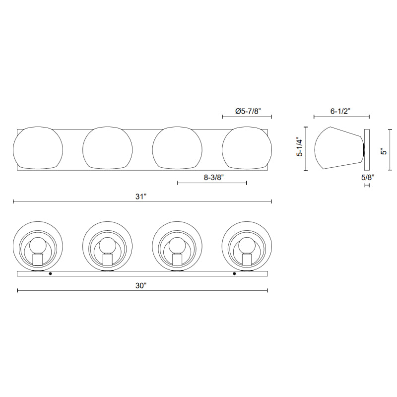 - Backplate: 30" W x 5" H x 0.63" Ext.