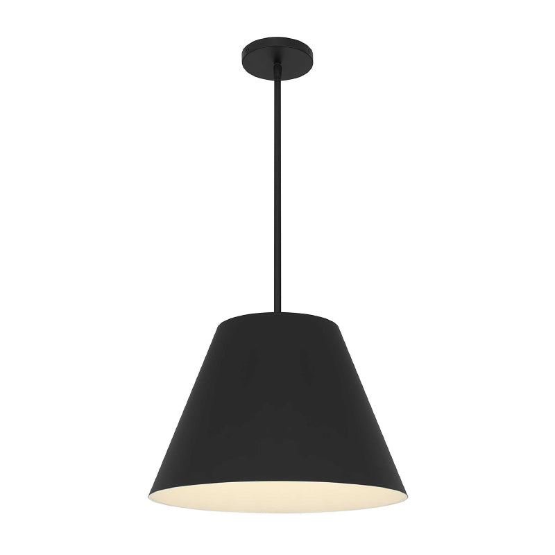The Jaz LED Pendant features a sleek, tapered shade with concave opal glass diffuser designed for both indoor and outdoor spaces, thanks to its wet location rating.