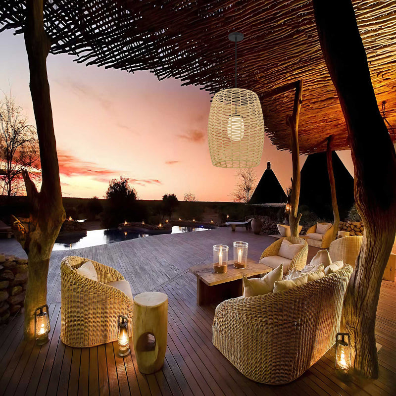 The Aruba Pendant features a finely crafted woven weather-resistant rattan design, paired with an etched opal glass globe for a soft, inviting glow. Its modern yet natural aesthetic brings a relaxed sophistication to any space, making it ideal for both coastal-inspired and eclectic interiors.