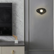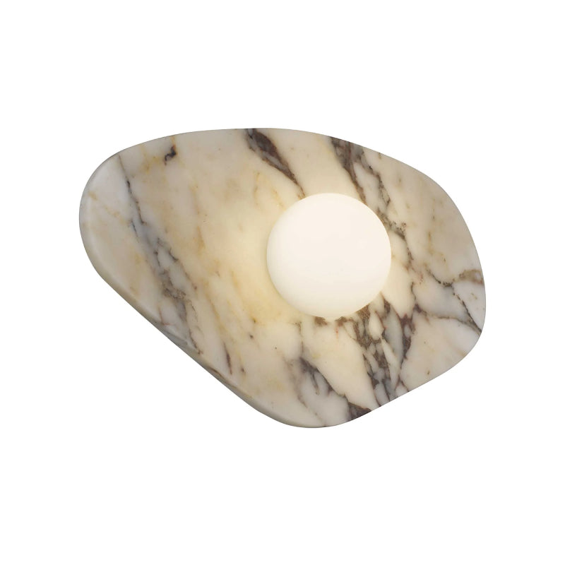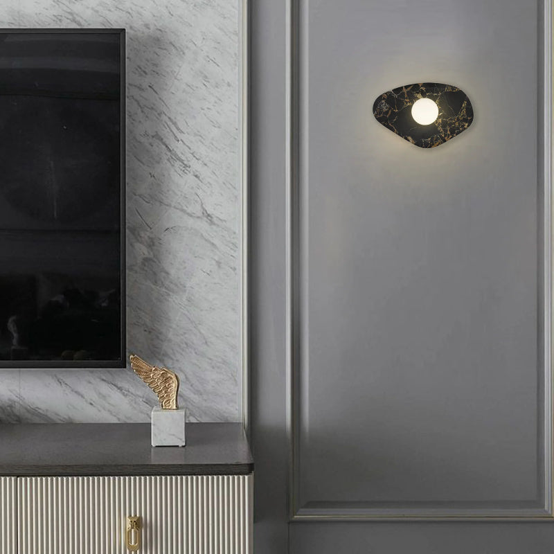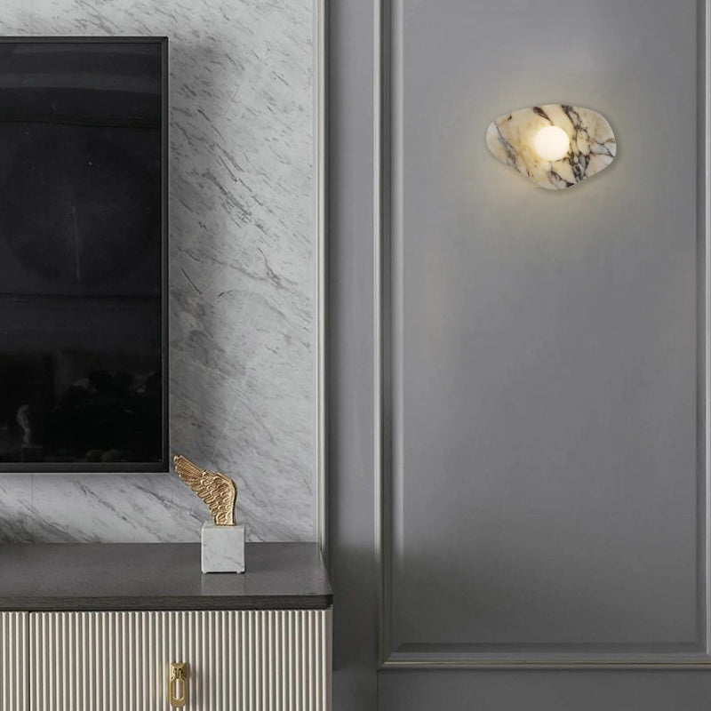 The Tenere Wall Sconce features an artistic, freeform design crafted from exquisite natural marble, paired with a beautifully etched opal glass orb that radiates a soft, ambient glow.