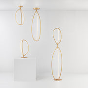 Arrival is a complete lamp family with dynamic, flowing shapes that sculpt light with delicate, graphic lines. Branching out from a central base, each model has three arms that form a soft, organic geometric shape through a profile that is both light and structured.