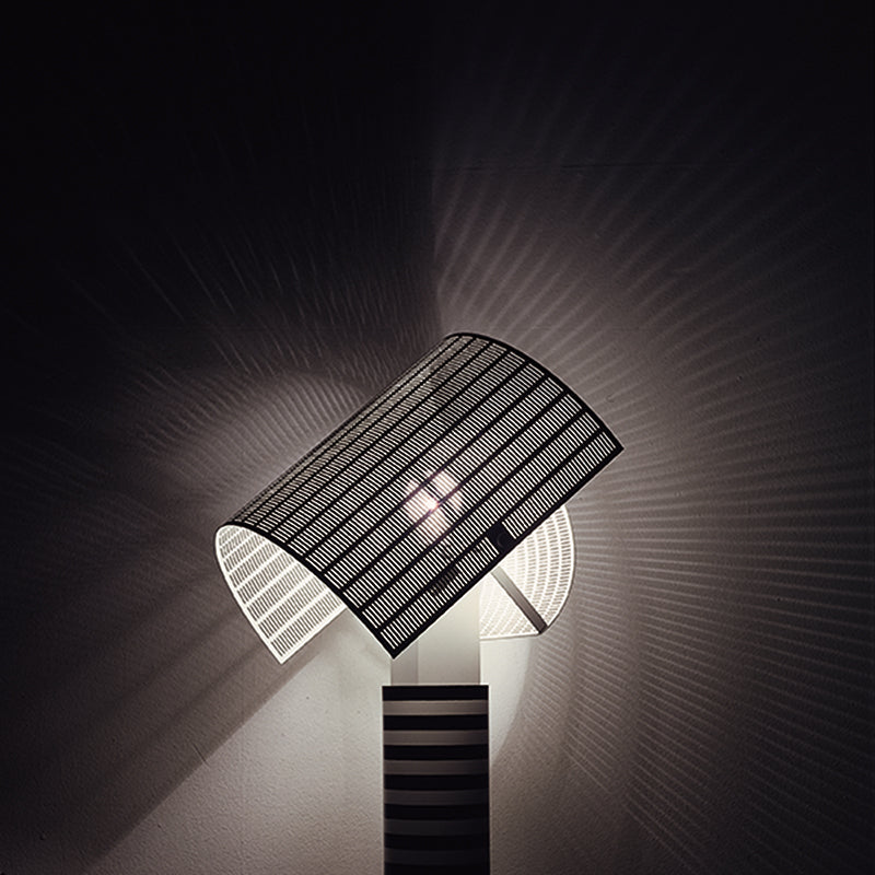 With its bold black and white stripes, Shogun creates a strong graphic presence with its contrast. Its diffuser is crafted of perforated steel, which diffuses a soft light through the tiny holes creating an interesting pattern of light and shadow.