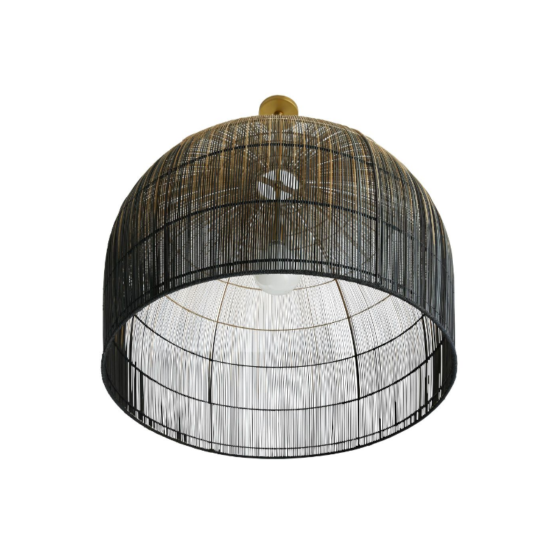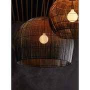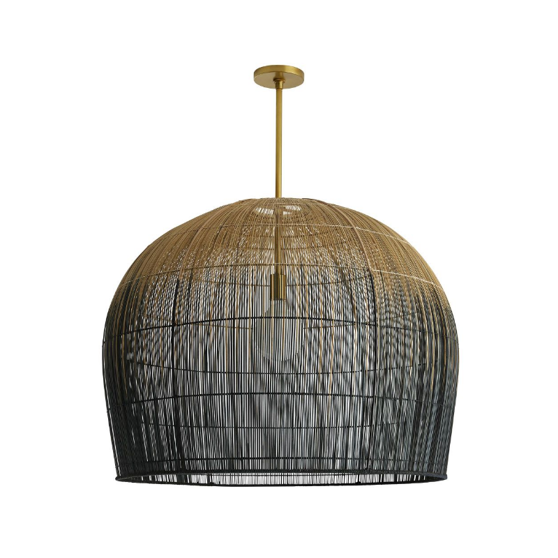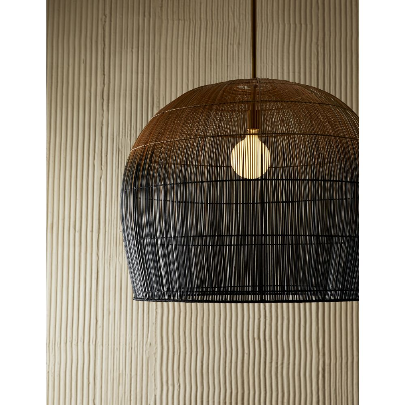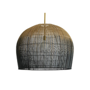 Makers utilize old world techniques to create this luxurious and modern piece. Made with hundreds of thin buri sticks, derived from a palm in the Asian tropics, the pendant is formed using traditional techniques practiced to make fishing baskets.