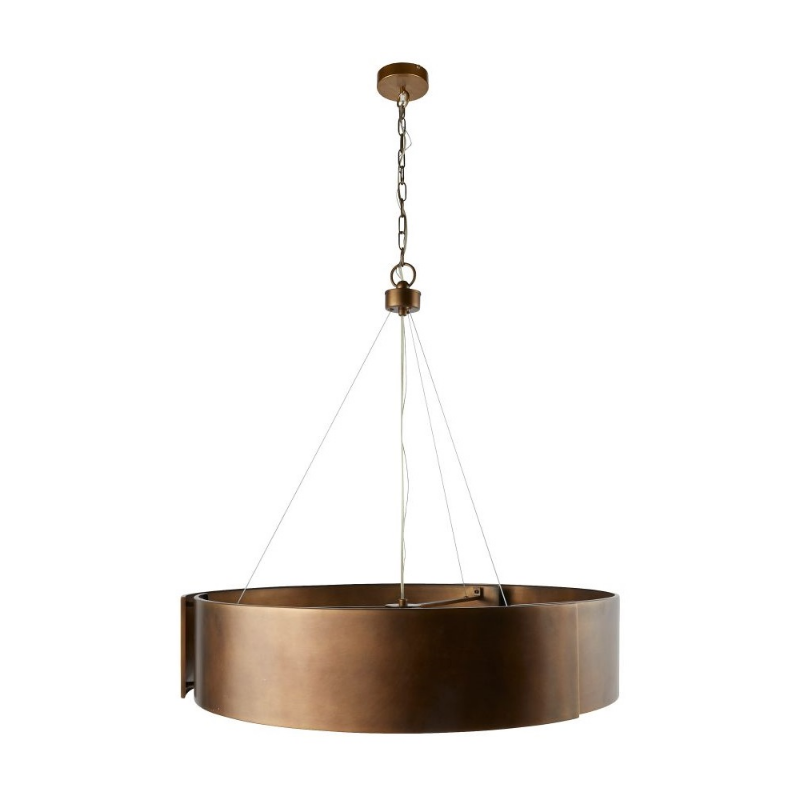 Adding intrigue to simplistic design is an effortless feat in our Dante Chandelier. From the suspended pendant to the overlapping bands that form the drum shade, every design feature is fit for the spotlight. A frosted acrylic diffuser tones down the glow of five hidden bulbs.