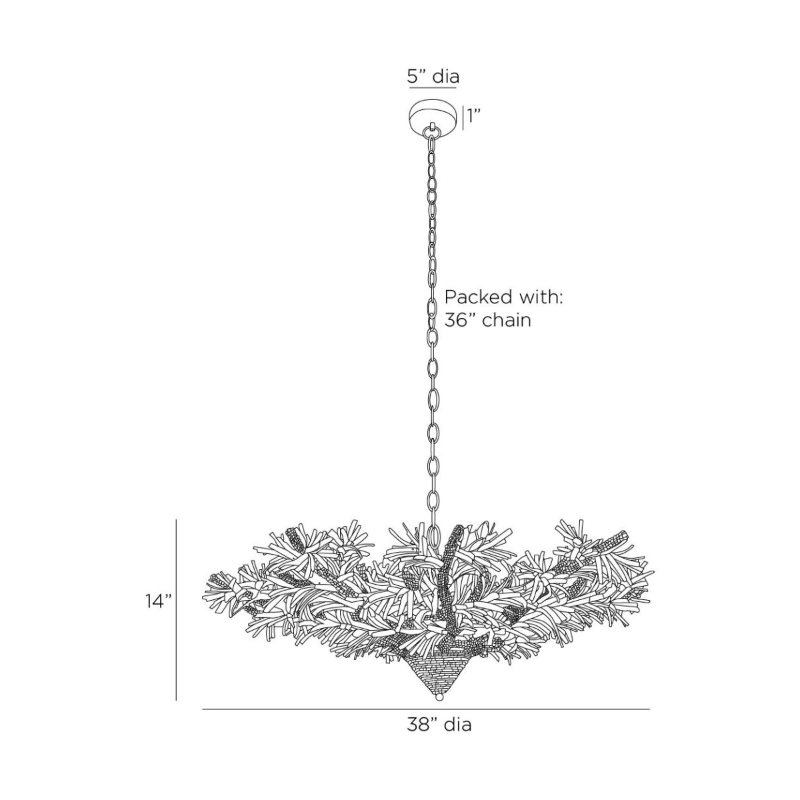 A textural mix of ivory coconut shell beads gives this fixture the look of a carefully constructed bird's nest. Delivering texture and movement wherever it is placed, it makes a bold choice for a coastal-themed room. Suspended from a white iron chain and canopy. Finish will vary.