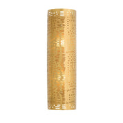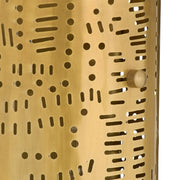 A laser-cut sconce of antique brass is delicately pierced in a pattern that recalls tribal pottery. Designed to allow light to cast shadows across the surface, this enigmatic style holds two bulbs. Finish will vary. Damp-rated, although limited, covered outdoor conditions may affect finish.