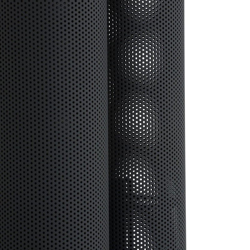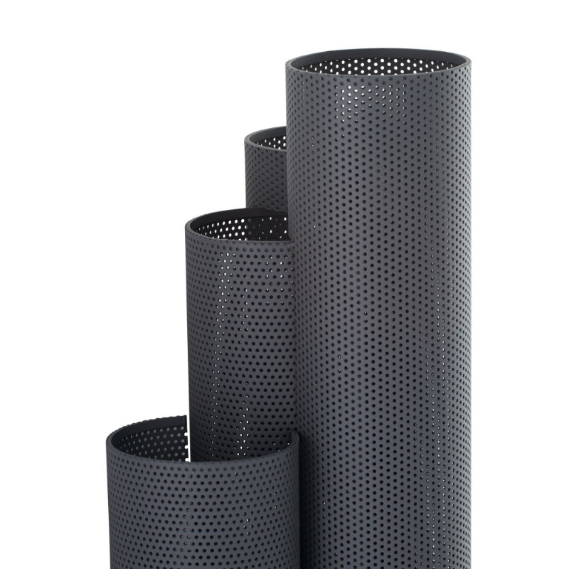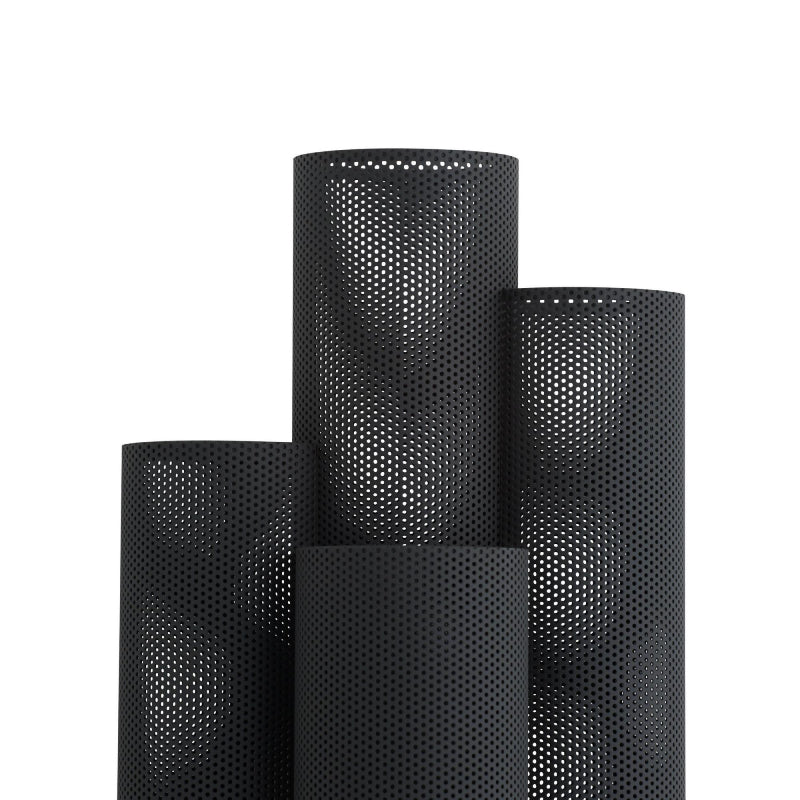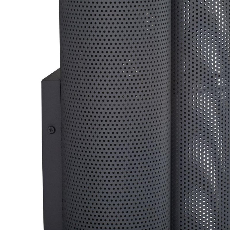 The Punch Oversized Outdoor Sconce features a trio of perforated marine-grade aged graphite steel cylinders to illuminate and elevate exterior spaces. Each of the cylinders contains bi-directional lights, to cast an upward and downward glow. A protective coating helps withstand the elements.