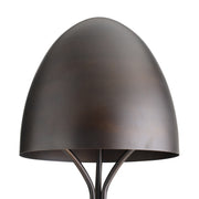 The reinvention of natural materials drove the design of our dramatic floor lamp. Classic wicker woven natural rattan combined with the Italia's muscular leg form topped by arms of English bronze-plated steel that disappear into the matching dome shade. Finish will vary.