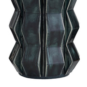 Shaped and glazed to create playful movement, our ceramic Journey is a modern update of a hand-thrown lamp from the mid-century. The zig-zag form is glazed in ocean reactive for subtle gradation and accented with antique brass hardware. Topped with a white linen drum shade and matching ceramic finial. Finish will vary.