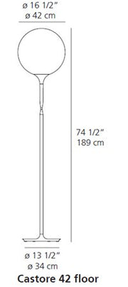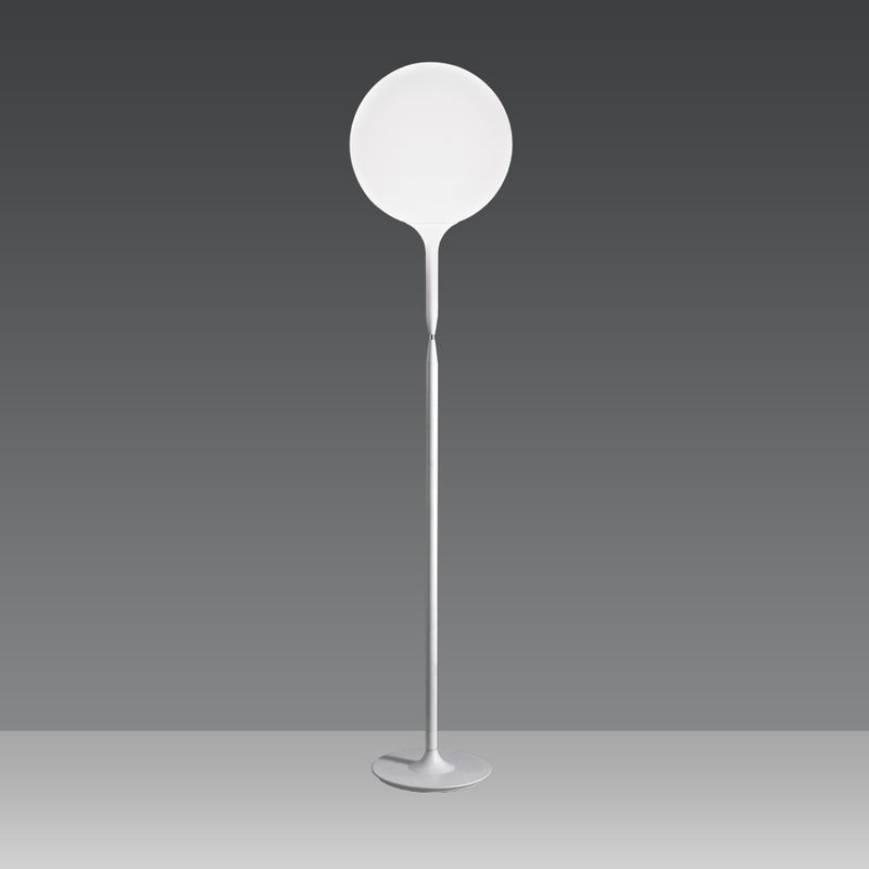 The spherical diffuser design is enhanced by a removable-fitting and tapering luminous stem, that makes the transition from the strong diffuser light to the blind lamp structure area gentle. Base in zamac, stem in thermoplastic resin, blown glass diffuser.