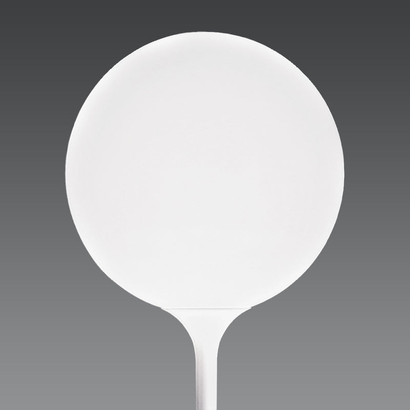 The spherical diffuser design is enhanced by a removable-fitting and tapering luminous stem, that makes the transition from the strong diffuser light to the blind lamp structure area gentle. Base in zamac, stem in thermoplastic resin, blown glass diffuser.