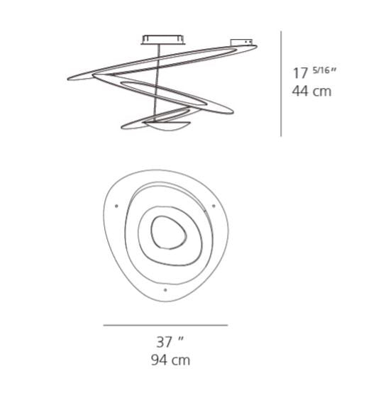 PIRCE Ceiling lamp in painted aluminium. Opening out of a slim disk are fluttering spirals, which fall gently downwards, creating magical effects of form and light.