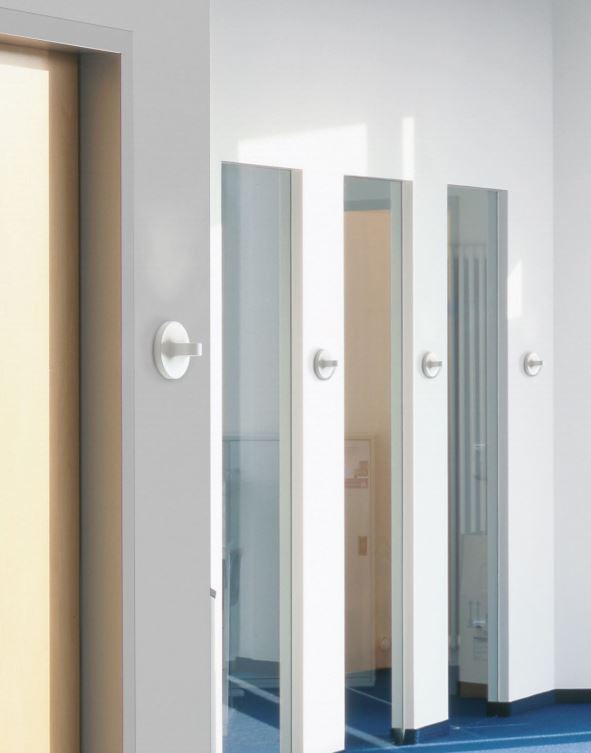 Tigia is a wall lamp with an elementary shape and a small size to meet the ADA standards, which provide for minimum protrusion.