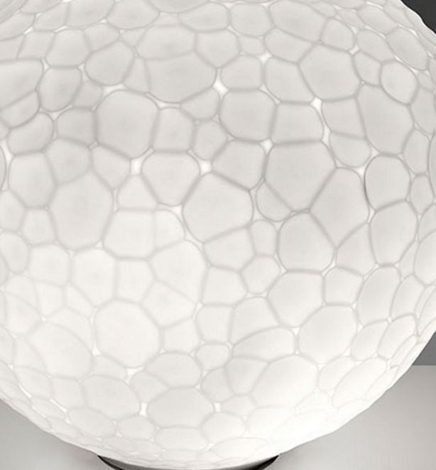 A family of lamps available in five different versions: table, table with stem, floor, wall/ceiling and suspension. Meteorite Stem Table 15 and 35 feature respectively a chromed aluminum and a steel stem.