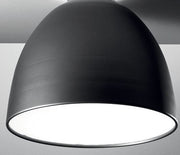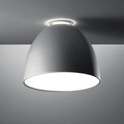 Ceiling mounted luminaires for direct lighting with subtle indirect lighting creating a halo on the ceiling.