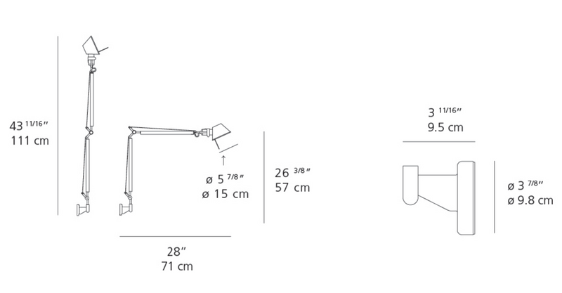 - Bracket, Joints and tension control knobs in polished die-cast aluminum