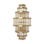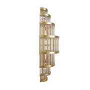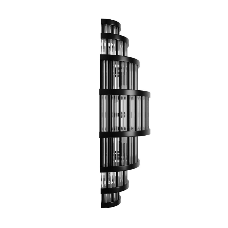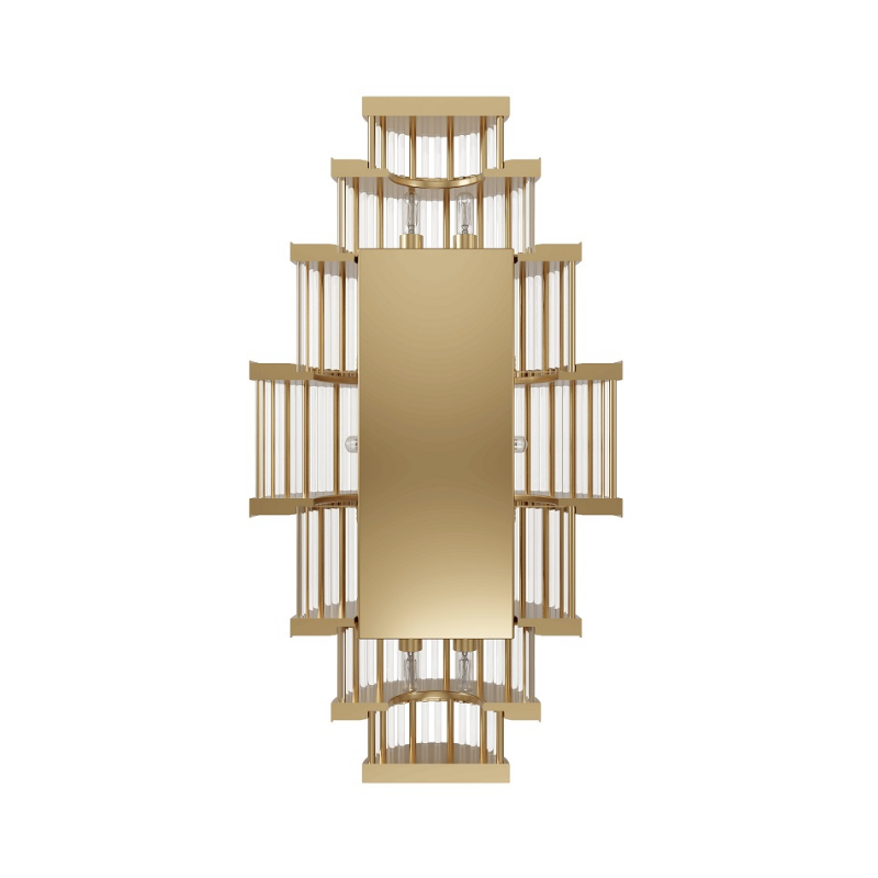 A lavish nod to the glitz and glamour of the roaring 20's: the art-deco inspired frame of the Waldorf Collection is ringed with stunning crystal cylinders interspersed with modern metal columns.