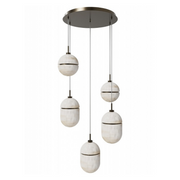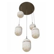 Sedona Collection exudes modern elegance with its alabaster shade and aged brass finish. The globes are either circular or oval and fixtures are designed as shown. The adjustability of the hanging length allows the fixture to be adaptable to various ceiling heights. The pendant is dimmable, allowing for customizable lighting to suit any ambiance. The multiple combinations available give flexibilty in the drama of the design. The Sedona is simple but elegant.