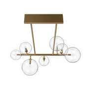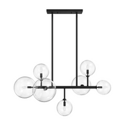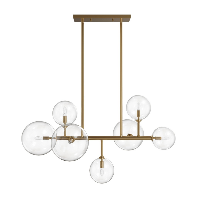 Our Delilah Collection boasts a stunning new linear chandelier, with its sleek mid-century modern design and clear glass globes that are both elegant and eye-catching. The oversize fixture adds a touch of sophistication to any room, casting a warm and inviting glow.