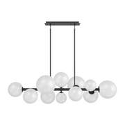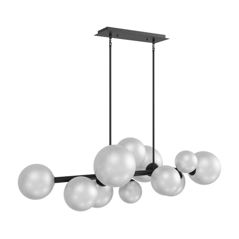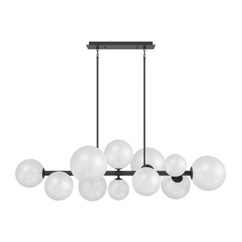 Our Delilah Collection boasts a stunning new linear chandelier, with its sleek mid-century modern design and clear glass globes that are both elegant and eye-catching. The oversize fixture adds a touch of sophistication to any room, casting a warm and inviting glow.