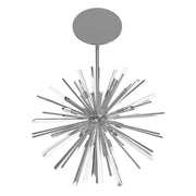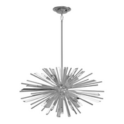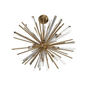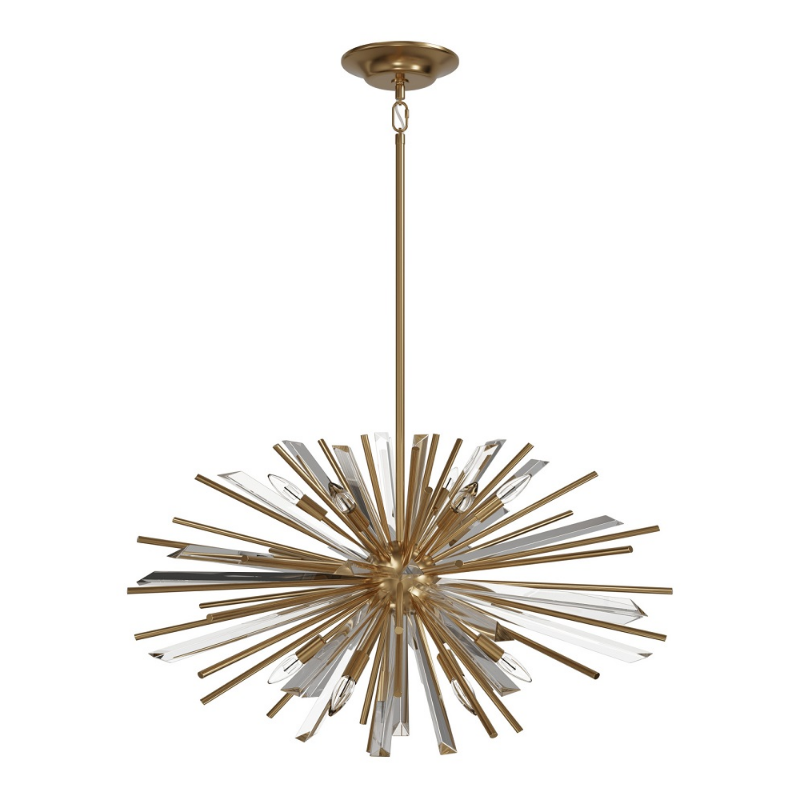 Our Palisades Avenue Collection's metal frame features a sputnik inspired silhouette complemented by bursting rays of glass and metal spokes, bringing a touch of glamour and sophistication to your space.