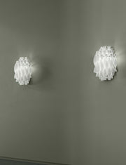 Waves of light, dynamic reflections, uniqueness. The knowledge and craftsmanship of a master glassmaker express themselves in the shape of small glasses that together compose a fluid and aquatic image with a diffused glow.