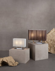 Admire the texture of a precious hand-made silken thread lampshade. Clavius expresses its refined elegance by radiating softness and atmosphere between light and shadow.