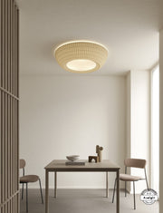 The ceiling version of Bell is in continuity with the aesthetic of the pendant one. The lightness given by the fabric, the multidimensionality and the chromatic variations remain unchanged. The adaptability to different contexts of this version is further granted by its smaller dimensions and the simplicity of its lines. Its pongé fabric, besides being flame-retardant, thanks to its texture, makes Bell an acoustic lamp.