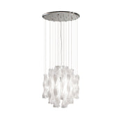 Waves of light, dynamic reflections, uniqueness. The knowledge and craftsmanship of a master glassmaker express themselves in the shape of small glasses that together compose a fluid and aquatic image with a diffused glow.
