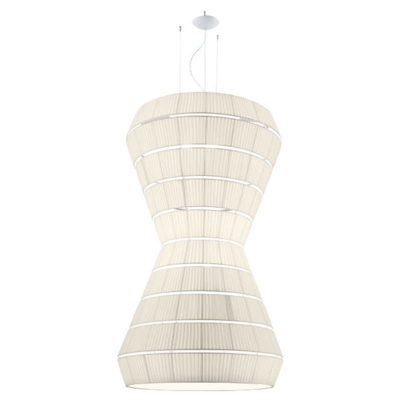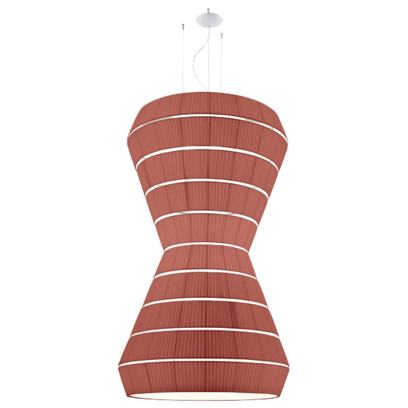 Layers is a collection of suspension lamps with a strong sculptural presence, obtained through combinations of different geometric shapes. Its layered system is modular, which allows you to create different shapes. The distinctive feature of Layers is the breadth of its volumes, but at the same time its lightness, which make this lamp ideal for large spaces. The texture of its fabric and the structure of Layers, as demonstrated by our tests, allow to reduce noise by up to 47%.
