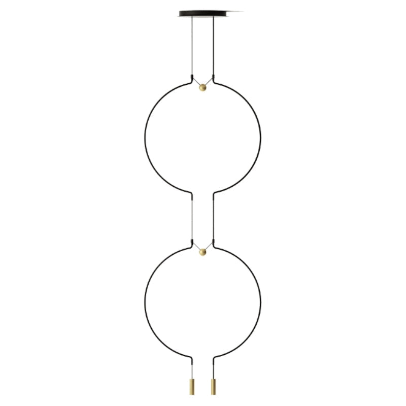 Modular lightness and elegance. Liaison tells about the perfect balance of three geometric archetypes: sphere, circle and cylinder compose a system that includes the single pendant and as well as the multiple compositions.