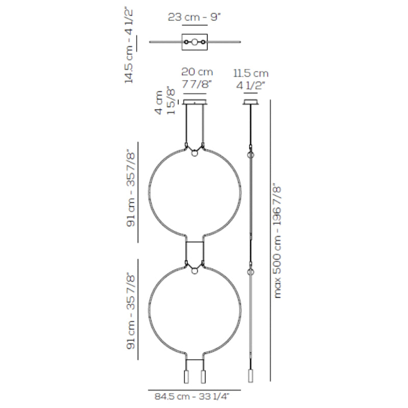 Modular lightness and elegance. Liaison tells about the perfect balance of three geometric archetypes: sphere, circle and cylinder compose a system that includes the single pendant and as well as the multiple compositions.