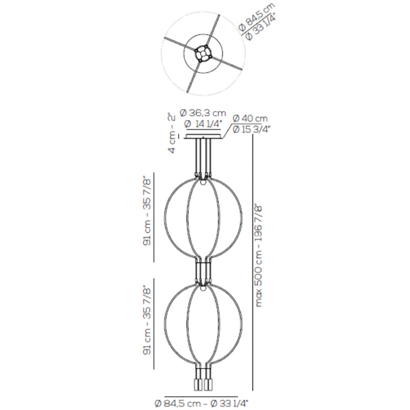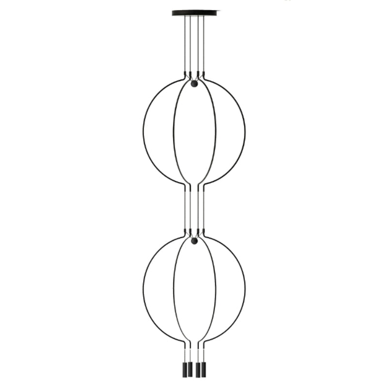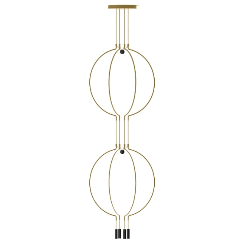 Modular lightness and elegance. Liaison tells about the perfect balance of three geometric archetypes: sphere, circle and cylinder compose a system that includes the single pendant and as well as the multiple compositions.