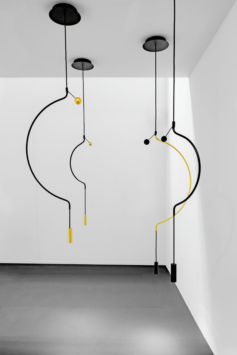 Modular lightness and elegance. Liaison tells about the perfect balance of three geometric archetypes: sphere, circle and cylinder compose a system that includes the single pendant and as well as the multiple compositions.