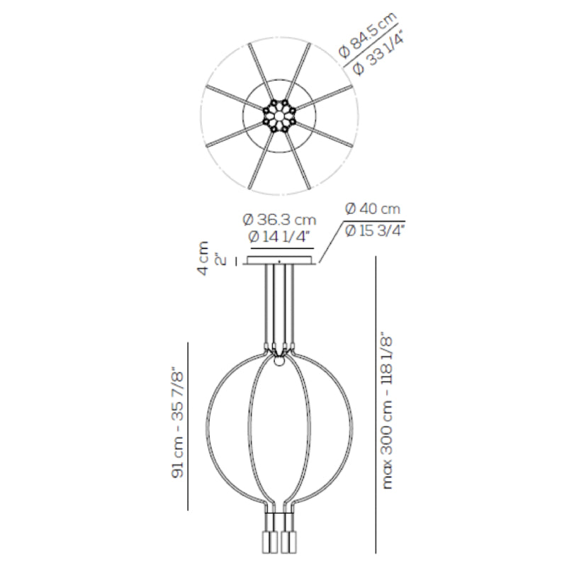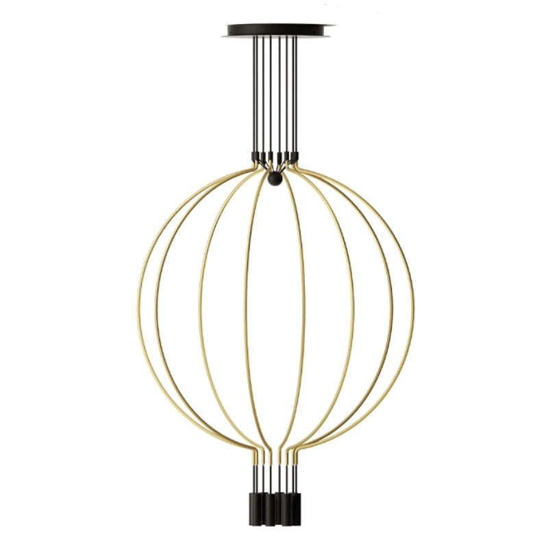 Modular lightness and elegance. Liaison tells about the perfect balance of three geometric archetypes: sphere, circle and cylinder compose a system that includes the single pendant and as well as the multiple compositions.