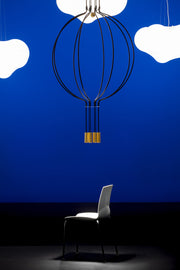 Modular lightness and elegance. Liaison tells about the perfect balance of three geometric archetypes: sphere, circle and cylinder compose a system that includes the single pendant and as well as the multiple compositions.