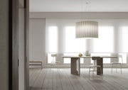 Skirt takes inspiration from the world of fashion, in particular from the garment of the same name. The result is a collection of pendant lamps with a unique and elegant design, given by its sinuous shapes. A collection that can be the focal point of an environment, without surmounting the other elements. A refined design that allows Skirt to adapt to different types of environments, from domestic to contract and hospitality.