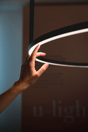 Essential graphic design and intense light. U-light expresses power and luminous efficiency emphasizing the aesthetic essence in a harmonious union that creates a strong presence in the space.