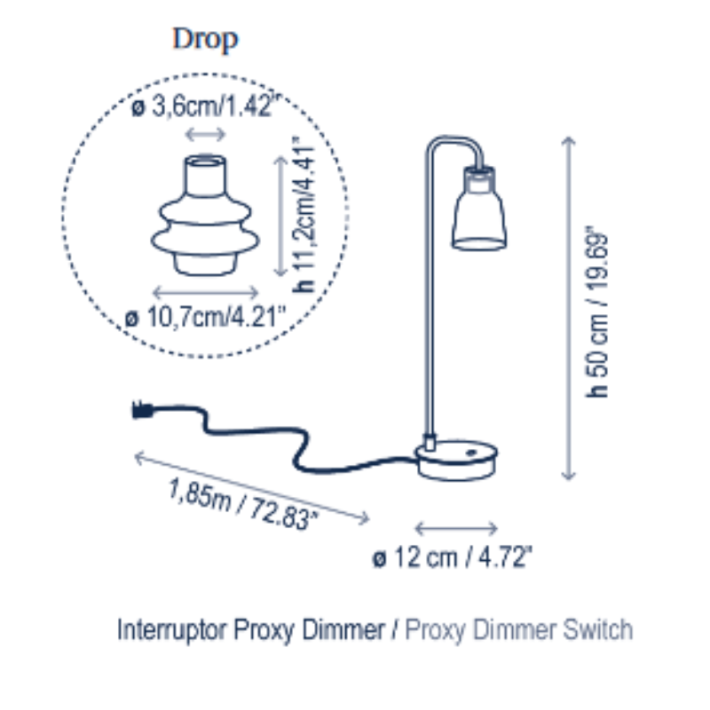 Bover Drop M/50 1-lt 20" Tall LED Table lamp, Proxy Dimmer Switch