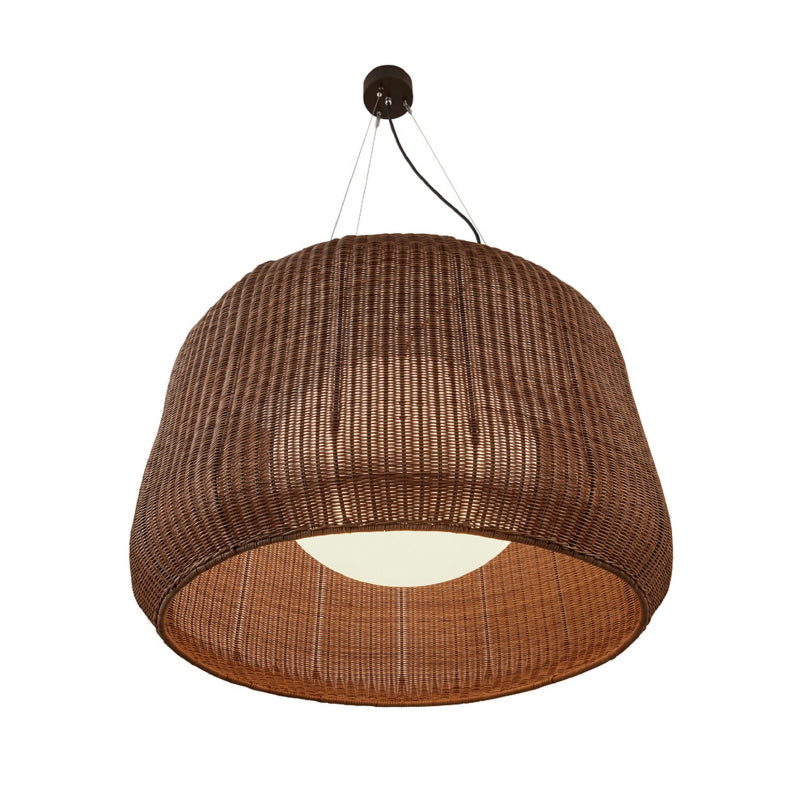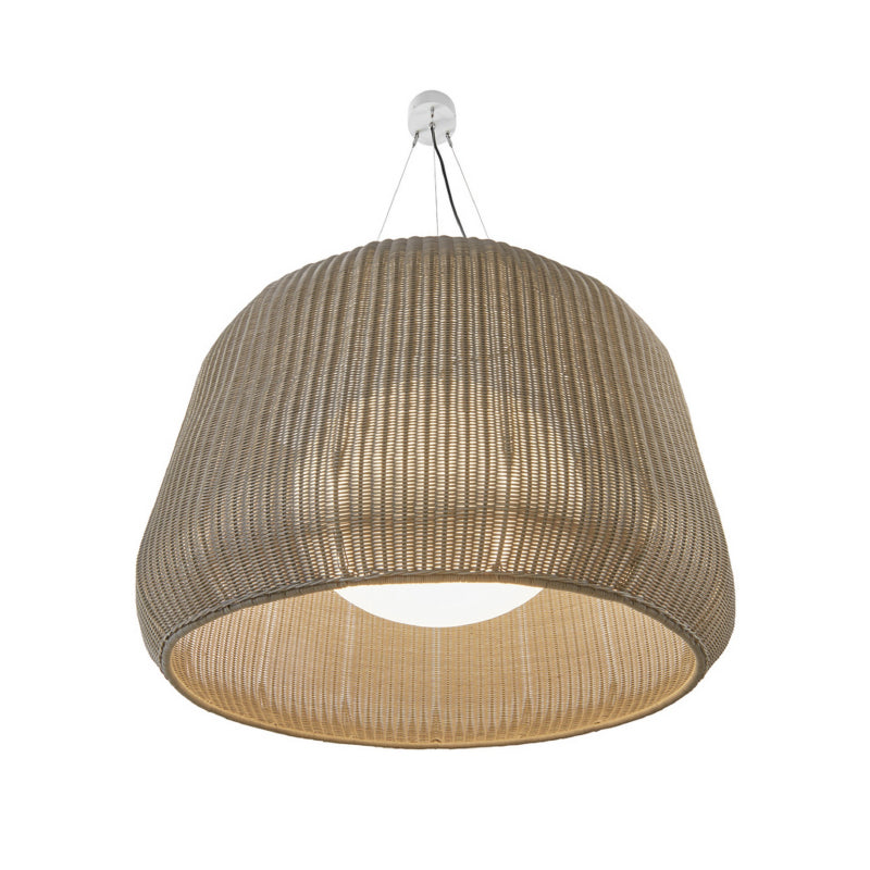 Fora is a product designed to illuminate warm outdoor spaces. Light source is protected by an elliptical medium intensity and U.V. resistant polythene globe, which grants a water tight electrical fixture. The shade is made of synthetic wicker; making it highly resistant to weathering while casting a pleasant diffuse light.