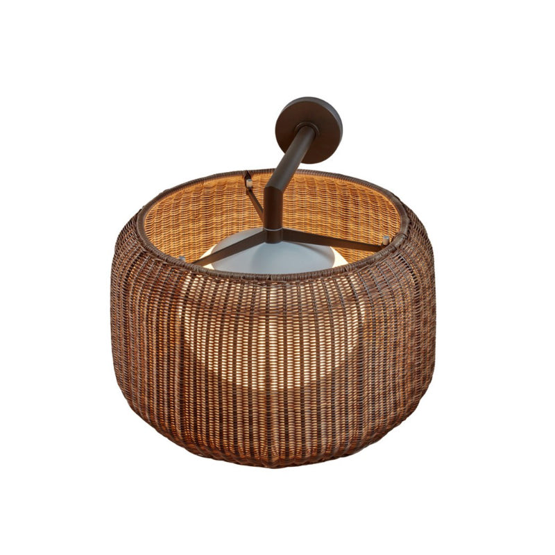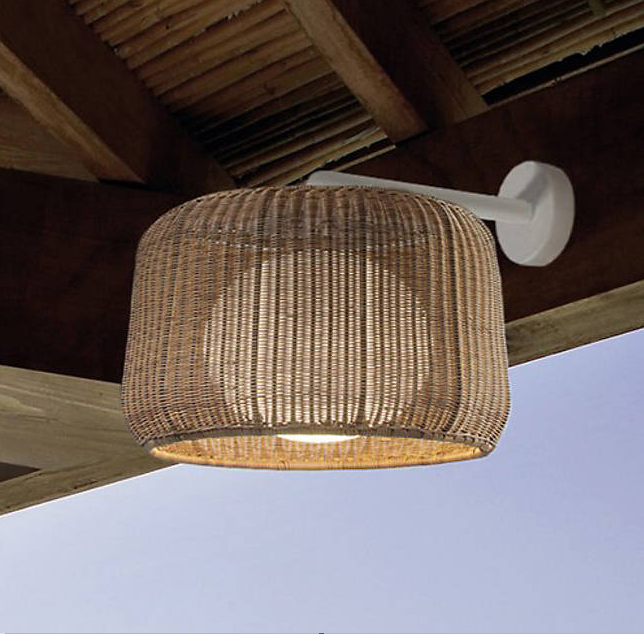 Fora is a product designed to illuminate warm outdoor spaces. Light source is protected by an elliptical medium intensity and U.V. resistant polythene globe, which grants a water tight electrical fixture. The shade is made of synthetic wicker; making it highly resistant to weathering while casting a pleasant diffuse light.